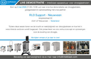Únete a nosotros el 6 de mayo de 2026 (11:00–13:00) para una demostración en vivo de limpieza con hielo seco, en colaboración con RLD Support.